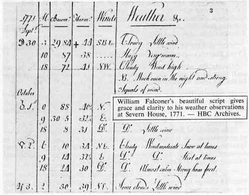"This day it blowed hard. At four a Clock ye wind dullered." - Henry Kelsey, York Factory, 1694.