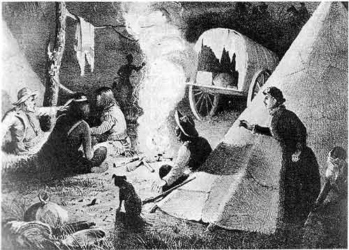 On nearing the Indian camp, several of them came forward and shook hands. They seemed to be in good humor and said their chief wanted to see me next morning when the sun would attain the altitude to which they pointed, which would be about ten o'clock. They said the chief had important matters to talk to me upon, and added, for me to go back to the fort and sleep well as we would not be disturbed during the night. They also told me to keep my family close to me, shook hands, and went back to their camp. Then I returned to the fort.