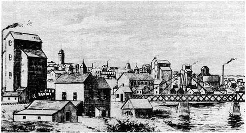 Of course, with wheat representing the touchstone of commerce a commanding feature of Brandon's expanding skyline were the buildings that housed the city's grain storage and milling facilities. There were five elevators which included the Ogilvies, Mitchell and Campbell, McMillans, McLaren, Parrish and Lindsay; one grain storage warehouse owned by Thomson and one steam operated flow and oatmeal mill and elevator owned by Kelly and Alexander. The total combined storage space was 200,000 bushels. Over 10,000 bushels a day was handled by these facilities. Brandon handled twice as much wheat as the next largest point in the whole Northwest Territories. In fact, in 1888, Brandon claimed to be the largest primary grain market in the world. The goal for the immediate future was to have 5,000,000 bushels of wheat "raised and for sale" within a radius of ten miles of the city!