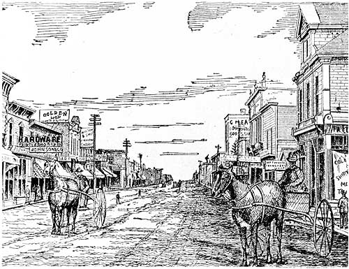Interest in stock raising was slowly but steadily increasing owing to the abundance of hay, ideal pasturage and numerous streams and lakes that dotted the landscape but king wheat held the spotlight as the number one objective for quite a number of years. The actual breakdown in bushels in yearly yield increases is as follows: 1882, 250,000; 1883, 450,000; 1884, 560,000; 1885, 900,000; 1886, 550,000. (1886 was a bad year).