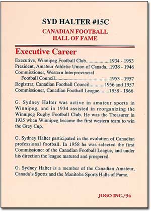 Halter’s member card for the Canadian Football Hall of Fame |