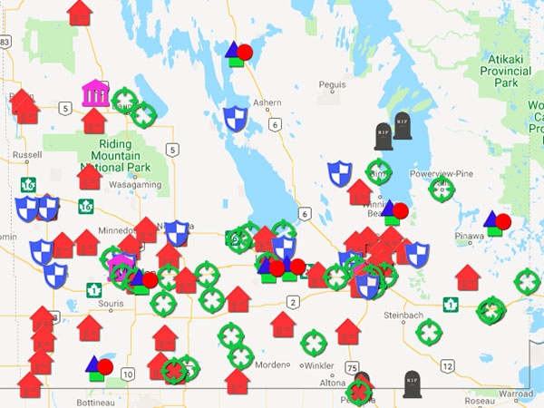 This is a collection of historic sites in Manitoba compiled by the Manitoba Historical Society. The information is offered for historical interest only.