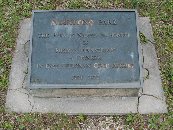 Located on the south side of Munroe Avenue just west of its intersection with Molson Street, this park was named in honour of Thomas Armstrong, an early East Kildonan politician. It was dedicated in July 1972.
