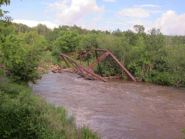 Through truss bridge on the Shell River at Asessippi, built in 1893 and partially dismantled in 1969 (June 2012)