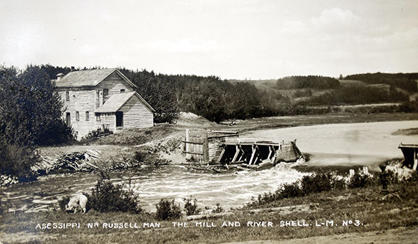In 1882, with a federal land grant and hope of an early railway connection, the Shell River Colonization Company founded the village of Asessippi (Cree for “shell river”) at this site in the Rural Municipality of Riding Mountain West. A twelve-foot-high dam and water wheel provided power to operate a roller-process grist mill and saw mill. Other industries included a shingle factory, brickworks, and cheese factory. A general store was built, along with a church, store, boarding house, livery barn, blacksmith shop, and school. By 1883, some 50 settlers from Ontario had taken up residence at Asessippi and the Rural Municipality of Shell River was incorporated. Municipal meetings were held in the Asessippi Town Hall. In 1885, a curling club was founded at Asessippi.