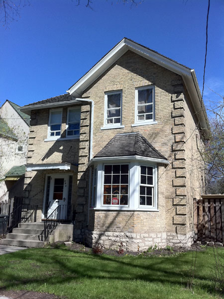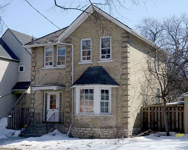 In 1882, William S. Ashdown, a brother of hardware merchant James Henry Ashdown, built this two-storey brick-veneer house on the east side of Kate Street between William and Bannatyne avenues. He shared a backyard with 120 Juno Street, erected the same year by another brother, George Ashdown. Ashdown moved out of the house in 1885 but retained ownership until 1893 when he sold it to photographer Israel Bennetto, who lived in it until 1915. The building is a municipally-designated historic site.