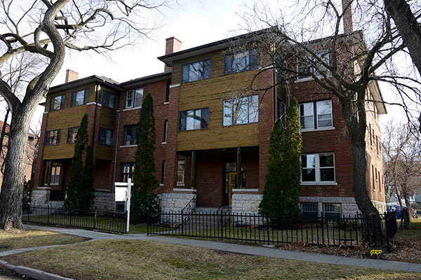 This three-storey brick and stone block on Dorchester Avenue in Winnipeg, measuring 56 feet by 94 feet, was designed by local architect Cyril William Upton Chivers and built in 1911 by contractor William Wardell Cross. It contained 14 residential apartments.