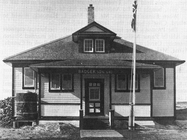 The Badger School District was established in April 1891 named for local homesteader Thomas Badger. A one-room wood frame school operated at NE10-4-4W in the Rural Municipality of Roland. The original schoolhouse was destroyed by fire in January 1915. The school year was completed at nearby Bethel Church until a replacement could be constructed.