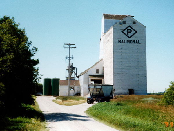A 40,000-bushel wooden grain elevator at Balmoral, on the CPR Arborg Subdivision in the Rural Municipality of Rockwood, was built by Paterson Grain in 1935 to replace an 1898 elevator purchased from the Northern Elevator Company in 1918. A 60,000-bushel crib annex was built on its north side in 1952 and 15,000-bushel steel tanks were added in 1969. Major renovations were made in 1976. Closed in the fall of 2002, the elevator was demolished in August 2003.