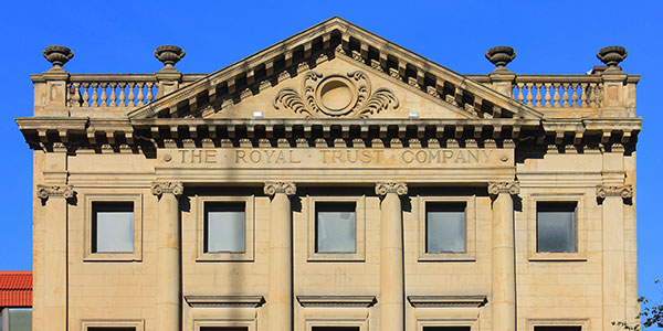 A one-storey rear addition, designed by local architects Pratt and Ross, was built in 1914 by the construction firm of Hazelton and Walin at a cost of about $40,000. Four years later, the bank merged with the Bank of Montreal and a subsidiary, the Royal Trust Company, took over this space as its western headquarters. Some unused offices were leased to private firms and government departments.