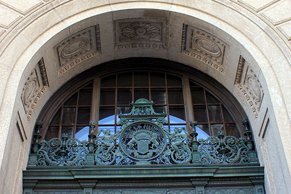 Entrance detail at the Bank of Hamilton Building (August 2024)