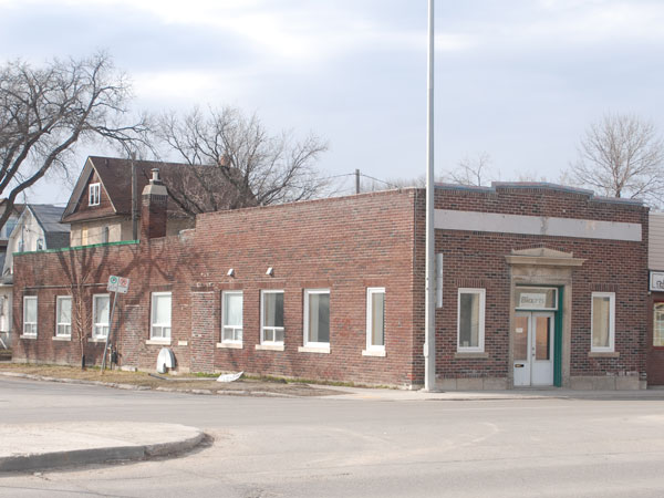 Located at the northwest corner of Kelvin Street [now Henderson Highway] and Hart Avenue in the Elmwood neighbourhood of Winnipeg, this one-storey brick building was completed in 1929. It was commissioned by the partnership of printers J. McLean and N. S. McLean (operating as McLean Printers), with construction overseen by contractor Charles E. Robinson. The structure measured 100 feet long with a frontage of 27 feet along Henderson, and was built of Fort William deep-cut bricks along with masonry trim. Its interior space was divided, with the front 45 feet occupied by the Elmwood Branch of the Bank of Montreal and the rear 55 feet, accessed via separate (and since bricked-up) entrance along Hart, as home to the office quarters and printing house of McLean Printers.