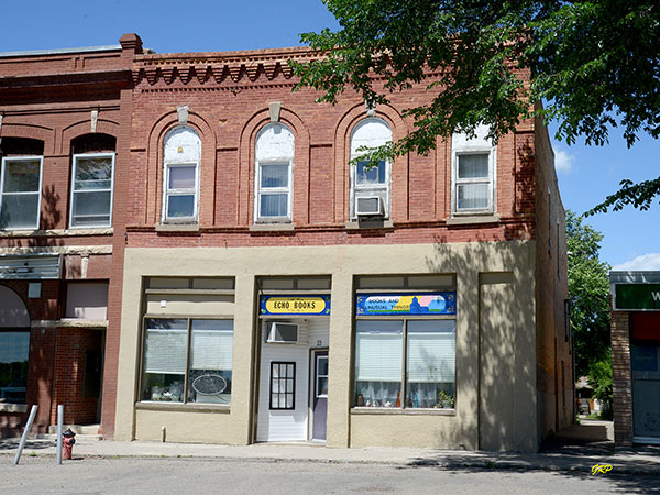 This two-storey brick building on Crescent Avenue West in Souris was built for William Jack Barclay, publisher of the Souris Plaindealer newspaper, to replace an earlier building destroyed by fire on 22 March 1896. The second floor contained residential apartments and two retail shops were on the main floor, the east of which housed the offices and printing plant of the Plaindealer.