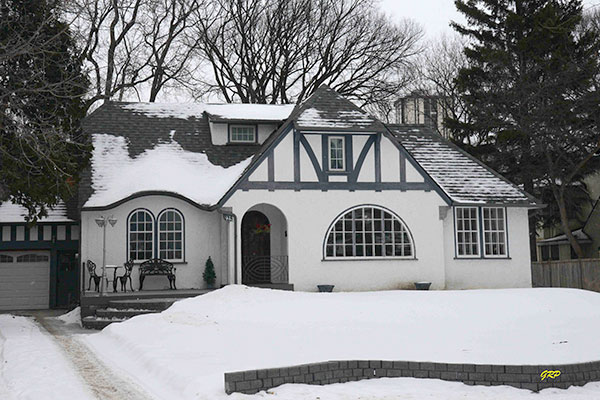 This two-storey wood frame residence in the Armstrong’s Point area of Winnipeg was built between 1929 and 1930 for Leon H. “Leo” Benard.