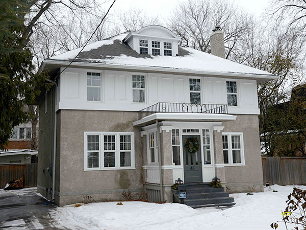 This two-storey residence in the Armstrong’s Point area of Winnipeg was built between 1924 and 1925 for Aime Benard.