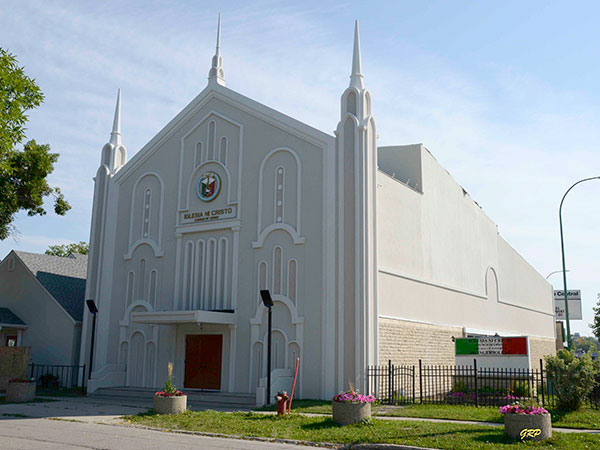 Construction of this church on Ingersoll Street in Winnipeg, for the congregation of Bethany Baptist Church, began in 1949. The first phase entailed construction of a 40 foot by 60 foot structure at the rear of the property, at a cost of about $19,000, with provision for expansion on the front as demand grew. In 1966, an addition on the south side, designed by the local architectural firm of Ward and Macdonald, was constructed.
