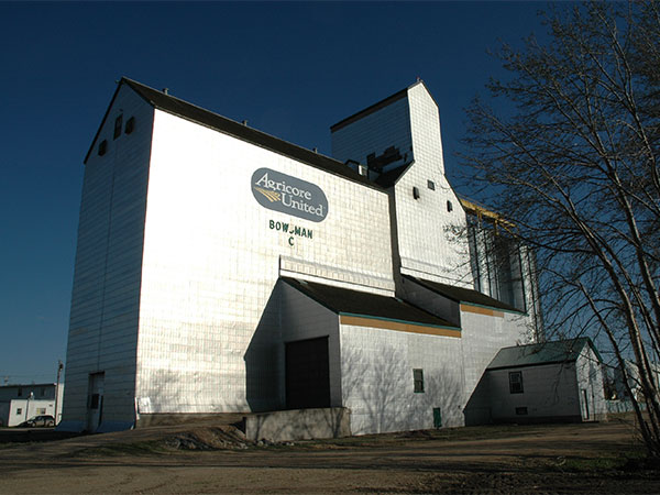 Historic Sites of Manitoba: Northern Grain Elevator / Canada West Grain Elevator / Searle Grain Elevator A / Federal Grain Elevator 1 / Manitoba Pool Grain Elevator D (Bowsman, Municipality of Minitonas-Bowsman)