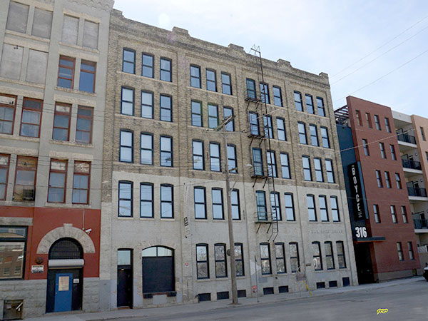 This five-storey brick and stone building on Ross Avenue in Winnipeg was designed by architects Alexander D. Melville and William N. Melville, and built between 1905 and 1906 by contractor Philip Burnett for Edward Boyce, a manufacturer of delivery wagons, carriages, auto bodies, hose wagons, bread wagons, buckboards, and sleighs.