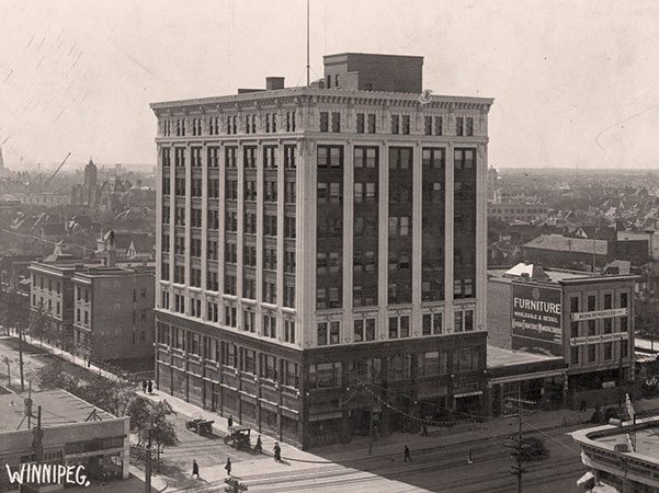 Originally intended to be a seven-storey building, during construction the decision was made to increase its height by an additional two floors. The building sat on the western periphery of the downtown business district until the Hudson’s Bay Company built its department store west of it, in 1925.