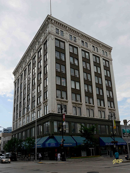 This nine-storey concrete, steel, brick, and terra cotta building at the southwest corner of Portage Avenue and Edmonton Street in Winnipeg, measuring 88.4 feet by 130 feet, was designed by local architect John Danley Atchison. It was built between 1911 and 1912 at a cost of about $230,000 for businessman William James Boyd by the National Construction Company, using structural steel provided by the Dominion Bridge Company.