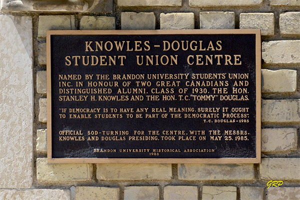 Constructed between 1922 and 1923 on a design by Brandon architect David Marshall, the three-storey Brandon Citizens’ Science Building had been intended as part of a larger science complex. With funds provided by private subscriptions in Brandon and elsewhere in western Canada, the building was made of Manitoba limestone and locally produced brick by Winnipeg contractor Ebenezer Claydon. A provincially-designated historic site, its present name commemorates two noteworthy graduates: Tommy Douglas and Stanley Knowles.