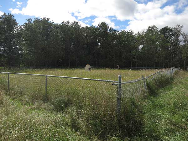 In this small cemetery in the Rural Municipality of Cornwallis are the graves of people who were students at the Brandon Indian Residential School. A commemorative monument contains the names of 11 people known to be buried here but it is believed there are other unmarked graves inside and outside a chain link fence at the site.
