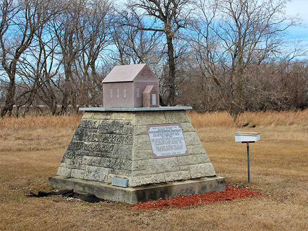 Established in February 1875 in the northwest quarter of 34-11-8W, the first Burnside School was a log building with a rough shingled roof, heated by a pot-bellied stove. It served the community until 1896 when it was replaced by a brick structure with a stone foundation, measuring 26 feet by 36 feet. The district was consolidated with the Prairie Central Consolidated School No. 2456 in 1967 and it closed in 1969. The school building was sold and torn down. A monument along the Trans-Canada Highway, in the Rural Municipality of Portage la Prairie, was dedicated in June 1997.