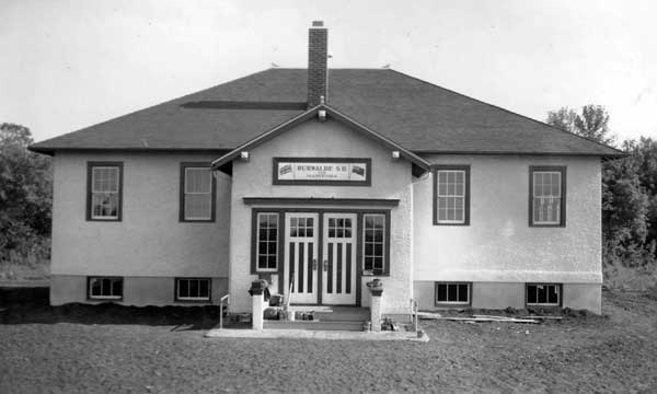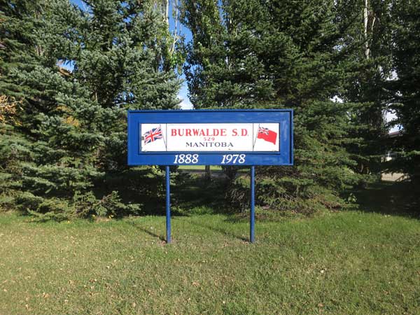 The Burwalde School District was established in March 1888 and a schoolhouse operated at SW30-3-4W in the Rural Municipality of Stanley. In 1894, Peter MacTavish taught 90 pupils, an unusually large number for one teacher. In 1895 Burwalde became a two-room school. The following year the school recorded its highest enrollment: 121 pupils. Then from 1905 to 1924, Burwalde operated as a one-room school. For the next 24 years the district again employed two teachers. In January 1937, the school building burned and by June a new two-room building was in place. In September 1948 Burwalde once again became a one-room school. Its area later became part of the Stanley School Division. The school closed in 1977. The building was bought by a group of local people and moved to a site west of Carman on highway 245 where it became a private school. It was later converted into a private residence that remains at the site, which is now used for a private church camp. The enamel sign from the school still stands along highway #3.