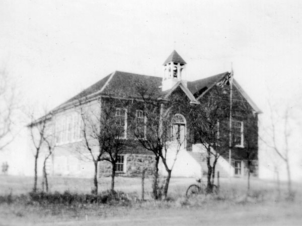 In 1920, two classrooms were added to the 1897 school building and this structure served the educational needs of the community until it was destroyed by fire on 13 February 1950. A new school was built that same year, on the same site: a two-storey, flat-roofed stucco building. As the school population grew, first a workroom, then a gymnasium were converted to classrooms. In 1962, a new collegiate was built to the south and the 1950 structure was used for the elementary grades. In 1978, a gymnasium and two classrooms were built between the two buildings, joining them.