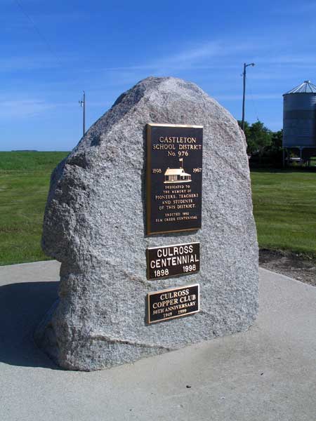 The Castleton School District was established in August 1898, operating in the village of Culross in the Rural Municipality of Grey until January 1967 when it merged as part of Elm Creek Consolidated School No. 812. A wood frame schoolhouse was constructed later that year. It was renovated extensively in 1937 with the addition of a full basement, furnace, indoor toilets, and student activity room. The building was replaced by a new structure in 1958 and the original building was moved to a farm southwest of Culross where it was used as a workshop, later destroyed when the site was abandoned.