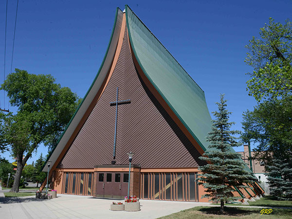 This Roman Catholic church on St. Mary’s Road in Winnipeg was designed by the architectural firm of Green Blankstein Russell and constructed between 1964 and 1965.