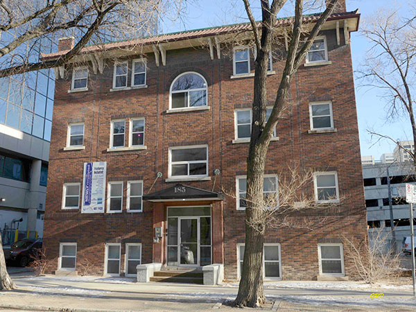 This three-storey brick block on Vaughan Street in Winnipeg was designed by local architect James William Hawker. It was built in 1928, at a cost of about $65,000, by the Moxam Construction Company for owner John Harold Wiltse. The 114 foot by 48 foot building contained 29 apartments in its original configuration, each with two, three, or four rooms. It has 31 apartments now.