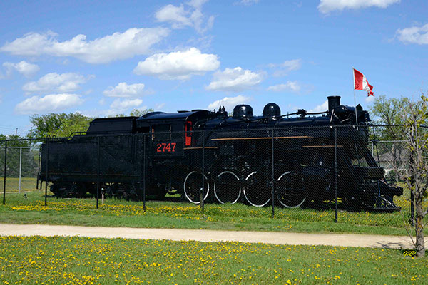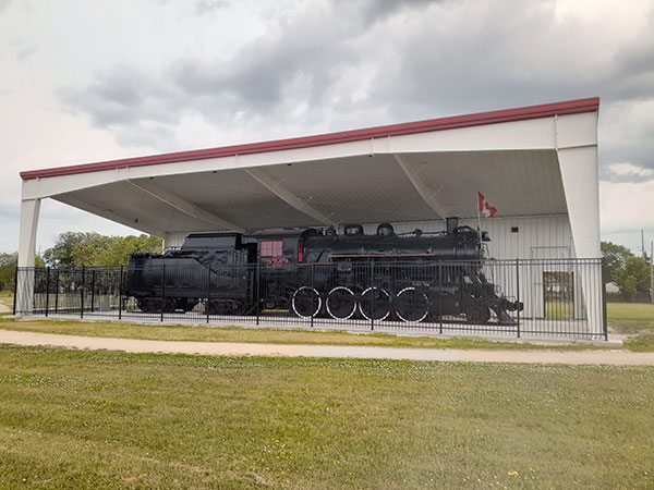 A 193-ton, steam-powered railway locomotive in Rotary Heritage Park in northeast Winnipeg was the first of 33 engines to be built completely at the Transcona Shops and the first engine to be built in western Canada. It was put into service in April 1926.