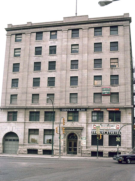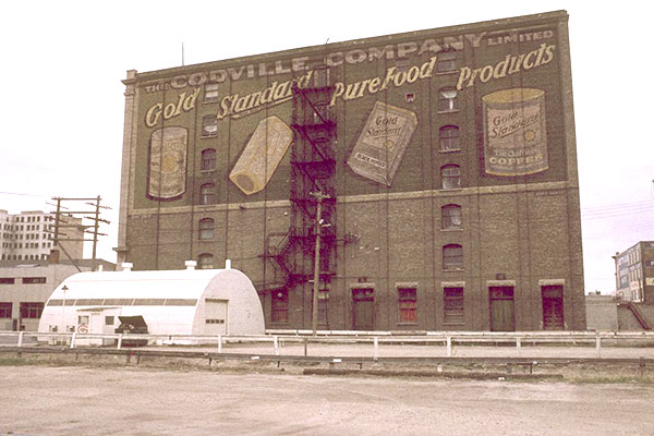 A seven-storey warehouse at the intersection of Westbrook Street (formerly Victoria Street) and Portage Avenue East in Winnipeg, measuring 100 feet by 132 feet, was designed by local architect Daniel Smith and built in 1906 by Kelly Brothers and Mitchell, at a cost of about $210,000, for the whole grocery firm of Codville-Georgeson Company.