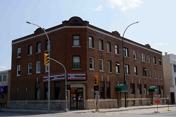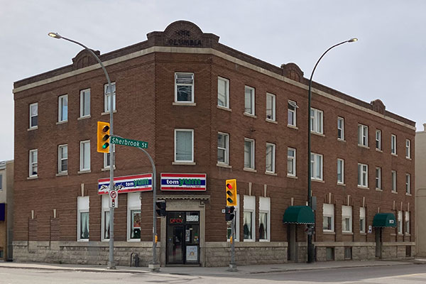 This three-storey brick and stone building at the southeast corner of William Avenue and Sherbrook Street (formerly Nena Street) in Winnipeg, measuring 99 feet by 53 feet, was designed by local architect George William Northwood. It was constructed in 1910 at a cost of $35,000 for the Logberg Printing and Publishing Company (publisher of an Icelandic-language weekly newspaper Lögberg) with an office at the rear and a single corner retail space on its main floor and 16 residential apartments on its upper two floors.