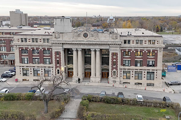 Aerial view of former Canadian Pacific Railway station at Winnipeg (October 2024)