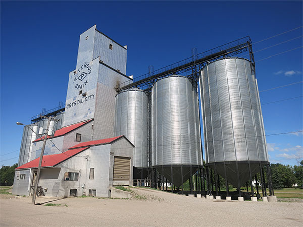 A grain elevator on South Railway Avenue in Crystal City, on the CPR Napinka Subdivision in the Municipality of Louise, was built in 1927 by United Grain Growers. Sold to Paterson Grain in 1940, its capacity was increased in the 2000s by six steel tanks. It was destroyed by fire on 20 August 2018.