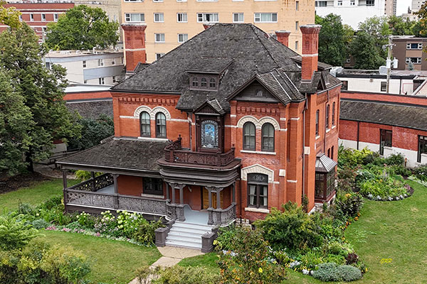 Dalnavert Museum in Winnipeg was once the 1895 home of Hugh John Macdonald. Designed by local architect Charles H. Wheeler and later converted into residential apartments, it was restored in the early 1970s by members of the Manitoba Historical Society to the way it looked when first constructed. Between 2004 and 2005, a Visitors’ Centre designed by local architect Wins Bridgman was wrapped around the eastern side of the original building. The MHS transferred ownership of the facility to a non-profit group called the Friends of Dalnavert in 2014.