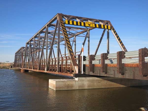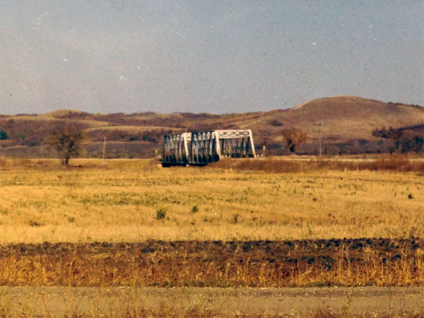 This steel through truss bridge on provincial highway 250, crossing the Assiniboine River in the Municipality of Riverdale was constructed in 1946 by the Dominion Bridge Company of Winnipeg.