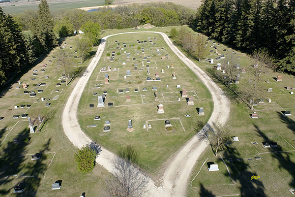 Aerial view of the Darlingford Cemetery (May 2021)
