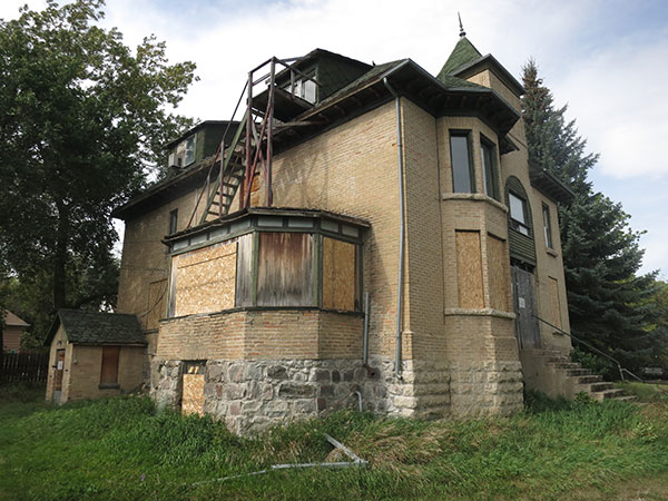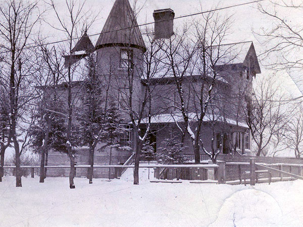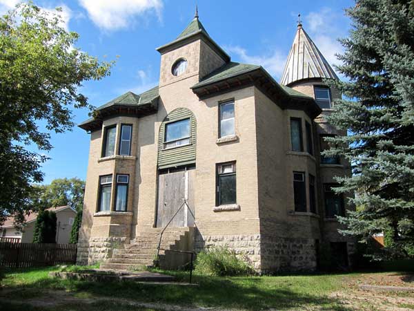 A two-storey brick house in the Town of Neepawa was built in 1887 for politician John A. Davidson. Originally, the building was a wood frame structure. Expansion in 1901 included covering its exterior in amber brick veneer. By this time, the house had 26 rooms featuring decorative millwork, a grand curved staircase, plate rails, a pool room, and conservatory. The property had tennis courts and bleachers. The house was purchased in 1916 by businessman William Henry Guinn, whose family occupied it until 1976 when it was sold and subdivided into apartments. Known locally as “The Castle,” the building was designated as a municipal historic site in 2000.