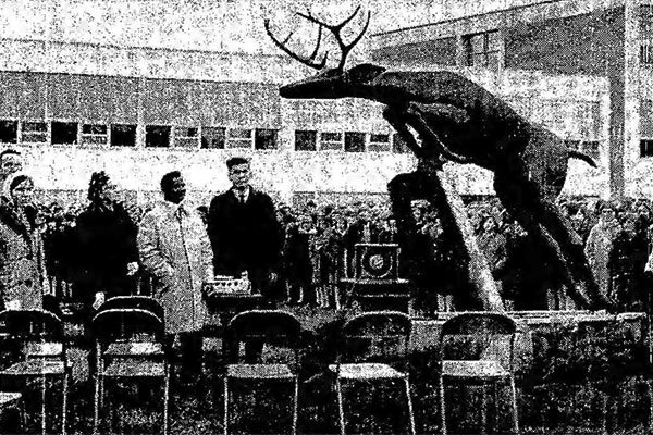 Dedication of a deer statue at Deer Lodge Junior High School (October 1967)