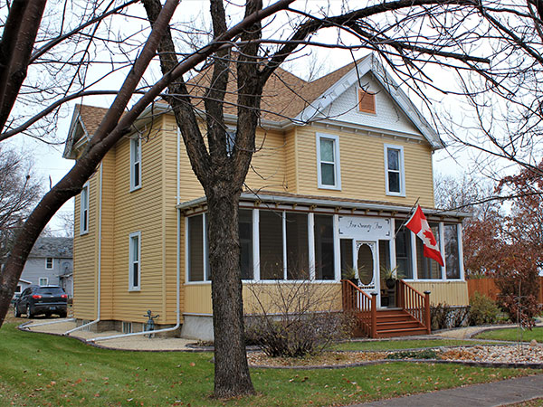 Originally built at Gretna in 1885 by businessman Otto Schultz (who was responsible for much of the town’s original boom), this structure is known locally as “The Doctor’s House” because, since the early 1920s, it has been occupied by a series of physicians: Dr. J. A. MacKenzie (1924-1929), Dr. James W. Simpson (1929-1943), Dr. J. A. McNeill (1943-1949), and Dr. Joseph P. Boreskie (1949-2006). The building was purchased and restored by Jeff and Kathy Dyck in 2007.