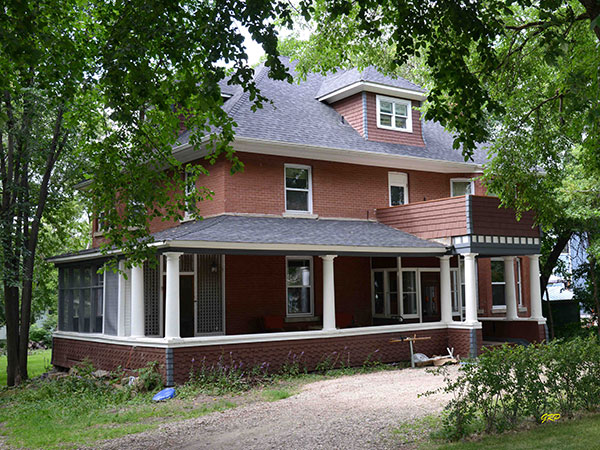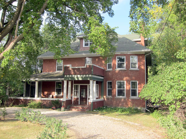 Built around 1910, the stately Dow House on Mill Road in Boissevain, a municipally-designated historic site (January 1995), is a large and finely detailed red brick dwelling of four-square design, with a well-conceived verandah and strong roof line. The well-known Boissevain landmark housed the prominent George Dow family for over 80 years, including businessman Edward Dow, also the town’s Mayor (1946-1968) and a provincial politician.