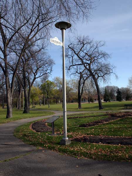In 1992, a plaque was unveiled on Drewry Lane in St. John’s Park by the Manitoba Heritage Council. It commemorates Winnipeg businessman and city councilor Edward Lancaster Drewry.
