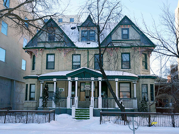 Constructed in 1901 on a design by architect Johann Schwab, this duplex opposite Central Park is one of the few residential buildings left in downtown Winnipeg. It was built at a cost of $8,000 for Martin Hoover and Alfred Town, who co-owned the Hoover and Town Clothing Store on Main Street. By 1908, the partnership had dissolved and the duplex was sold. The interior has been extensively renovated but the exterior is largely intact. The building is a municipally-designated historic site.