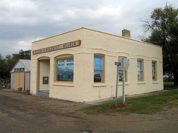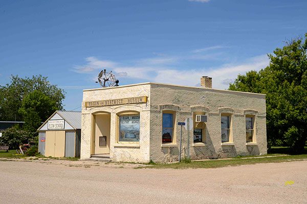 Built in mid-1902, this brick building at Elgin in the Municipality of Grassland was a branch of the Canadian Bank of Commerce. Originally two storeys high, the second floor provided accommodation for the bank manager. It was removed in the 1950s. The bank closed in 1995 and now serves as the Elgin and District Museum. It became a municipally-designated heritage building in 1998.