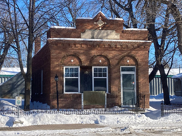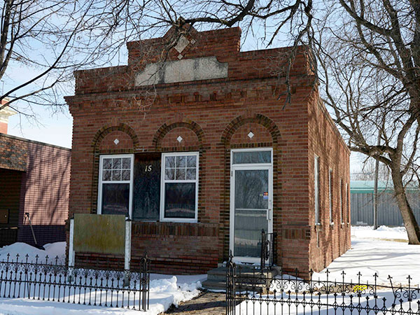 This one-storey brick building on Main Street in Emerson, measuring 20 feet by 40 feet, was designed by architect Alexander D. Melville and built in 1928 by contractor Alfred Henry Bears, at a cost of about $6,000, to house local circuitry for the Manitoba Telephone System.