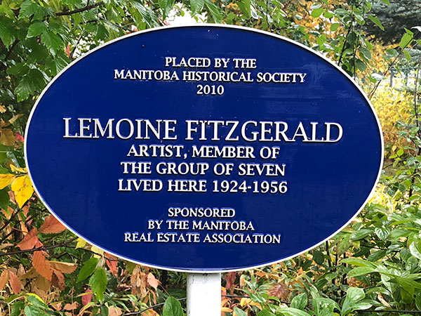 This wood frame residence at 30 Deer Lodge Place in Winnipeg, constructed in 1918, was occupied by painter Lionel Lemoine Fitzgerald (1890-1956) from 1924 to 1956. In 2010, it was commemorated with a plaque in the Memorable Manitobans: The Homes program.