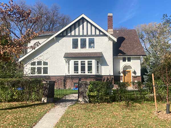 This two-storey house on Dromore Avenue in the Crescentwood area of Winnipeg was designed by local architect James William Hawker and built in 1928 by W. A. Irish and Company for businessman John Alexander Forlong. Measuring 40 feet by 49 feet, the building was constructed at a cost of about $35,000.